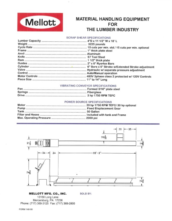 - Hydraulic Power Source - 20 HP TEFC motor, commercial gear pump, 20 gallon tank with suction and return filters; hoses included.